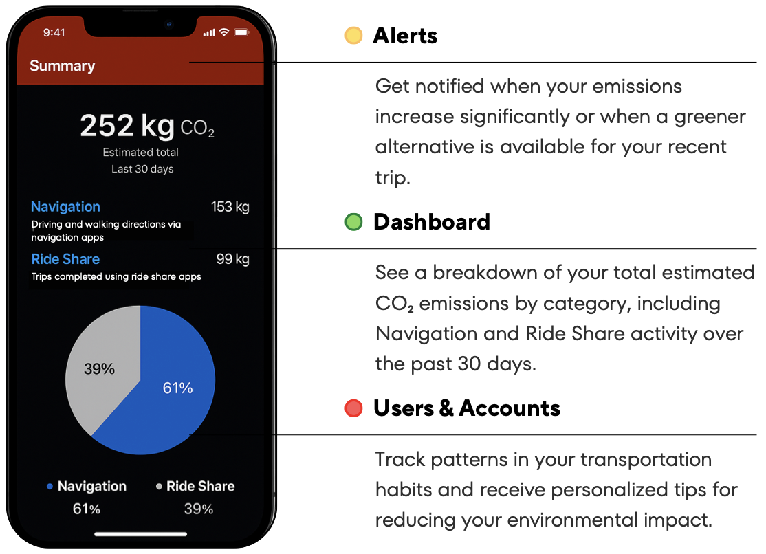 People often underestimate the carbon impact of daily travel because the data is hidden or inaccessible. By integrating carbon tracking directly into iOS, users can see their emissions in real time, understand where they come from, and receive timely nudges toward greener alternatives.